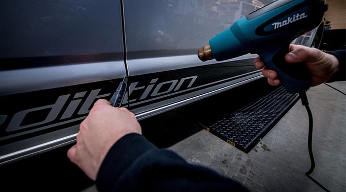 Als u dit zelf probeert is de kans groot dat u schades maakt. Het is tijdrovend en er blijven meestal vervelende lijmresten achter. Eventuele kleurverschillen kunnen wij meteen in diverse stappen polijsten. Dit is mogelijk in combinatie met een exterieur-behandeling.