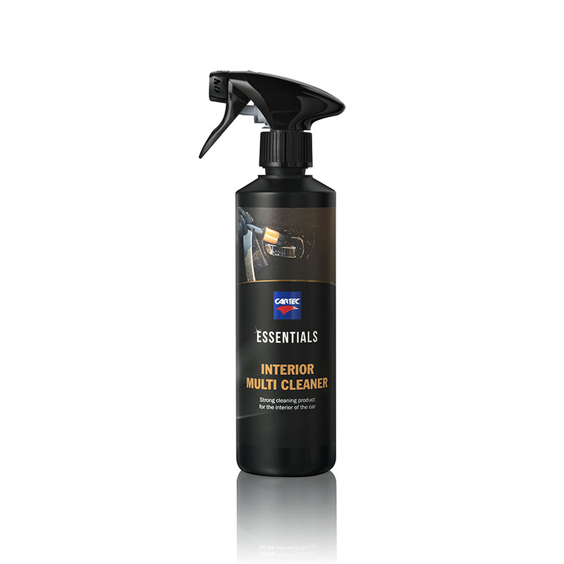 Cartec Essentials Interior Multi Cleaner is een reinigingsproduct geschikt voor de binnenkant van de auto. Reinigt moeiteloos olie, vet en sterk vuil van het dashboard, stoelbekleding en de deurpanelen. Cartec Essentials Interior Multi Cleaner laat na het opdrogen geen sporen of witte resten achter